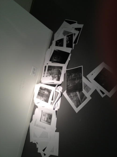 “Two Histories of the World: Part Two.” Supplementary paper materials available to viewers. Installation view, Hyde Park Art Center, 2012. Photo by Caroline Picard.