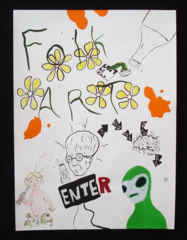There was a whole range of approaches these relationship took; some pieces shared a visual vocabulary with Imagism, and resonated strongly with its intense color palette, meticulous level of finish, and busy pictorial arrangements, with their preference for bilateral or indexical arrangements of form. Some artists reveled in a similar brand of black humor. In addition, there was a lot of overlapping subject matter in regards to gender issues and the employment of personal narrative. Lastly, and perhaps most prominently, were the shared art historical, pop cultural, vernacular or commercial references that the artists in Afterimage shared with the Imagists, drawing inspiration from, and even sometimes visually quoting, works by Öyvind Fahlström, Basil Wolverton and Joseph Yoakum among others.