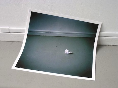 We all must bear the marks of our accumulated experiences, but we are also granted the opportunity to explain those marks in any number of ways, and put those accumulated experiences to any number of uses. I am thinking now of the show Jimmy Robert: Vis à vis, which closed last month at the MCA Chicago. The exhibition was beautifully crisp, leaving plenty of room for appreciation of Robert’s delicate aesthetic and for meditation of the themes of his work. Robert is in love with many things, including choreography and the human body, but chief among them is paper. His elegies to the everyday material present and embody an endless cycle of rebirth. A sheet of blank paper becomes crumpled; is dropped on the ground; becomes a photograph; is propped on the floor in the very position in which it was photographed; becomes an art object.
