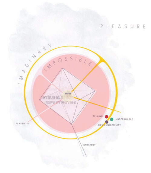 Emily Roysdon (designed in collaboration with Carl Williamson). “Ecstatic Resistance (schema),” 2009. Silkscreen and chine collé on paper. 34 ½ x 25 in. Printed by 10 Grand Press, Brooklyn, New York.