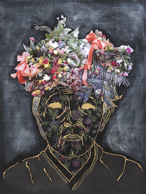 Young Sun Han. “Matriarch,” 2012. Acrylic, ink, graphite, photo cutout, gold leaf, 16.5 x 12.5 in. Courtesy of the artist.