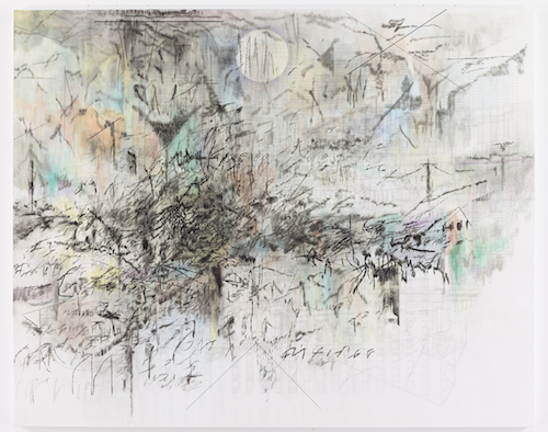 Julie Mehretu. “Fever graph (algorithm for serendipity),” 2013. Graphite, ink and acrylic on canvas. 96 x 120 in. Courtesy Marian Goodman Gallery.