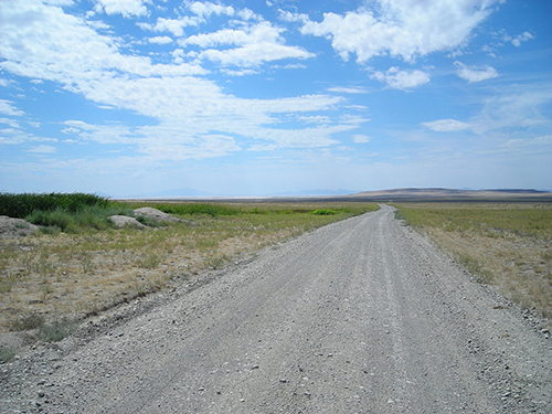 Six years ago this summer, I had the opportunity to visit Robert Smithson’s Spiral Jetty. My approach via the long dirt road was almost exactly the same as what Smithson depicts in his film: the loud noise of a metal carriage on a washboard road, the horizon line of the Wasatch Range, the dust pouring out from behind me. The actual size of the Jetty was smaller than I’d anticipated, but the shock value of the colors more than made up for this: the sky was blue, the lake was pink, the Jetty was…bright, bright white, encrusted by salt after being submerged for thirty-plus years.