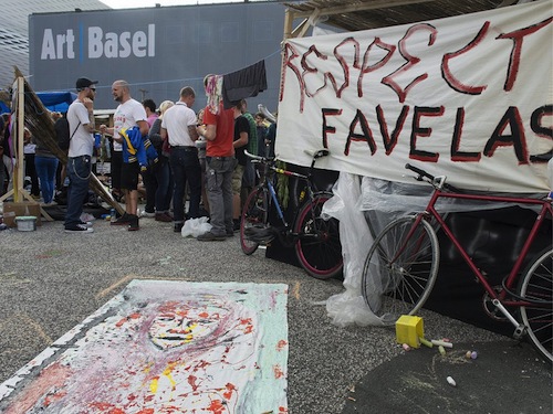 Between the prevalence of dOCUMENTA (13) artists and the inclusion of other politically engaged artists, such as Johan Grimonprez, Theaster Gates, and Alfredo Jaar, it’s perhaps not surprising that numerous people (reviewers included) lauded the display for its “response to a decade of global conflict.” And yet, in this mecca of the 1 percent any radical, subversive, or activist intention was completely lost. It’s no wonder that on June 14, with civil war raging in Syria and anti-government protests continuing in Turkey, approximately 150 people peacefully occupied Japanese artist Tadashi Kawamata’s tactless Favela Café (2013), a fully working watering hole and eatery erected outside the fair in the guise of Brazil’s slum settlements. What followed, a brute display of force by Basel police, who shot rubber bullets and tear-gas at the gatherers, was obscene and entirely gratuitous.