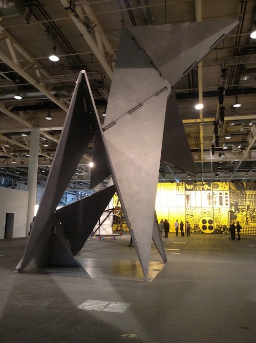With works by minimalist sculptor Carl Andre, performance pioneer Gina Pane, and arte povera innovator Mario Merz prominently displayed, another strong theme was veterans of the 1960s—the decade that continues to unequivocally inflect contemporary art practice. Upon walking into Art Unlimited, in fact, a supersized, 23-foot tall perversion of Brazilian artist Lygia Clark’s Bichos (Creatures) welcomed visitors. Originally made between the years 1960 and 1964, these modestly-sized hinged-aluminum sculptures were meant to be physically manipulated, animated and transformed by the everyday person. According to a representative of Alison Jacques Gallery, it was Clark’s intention to one day realize them on a monumental scale; but, of course, at this monstrous height, the sculpture’s once participatory social purpose is negated.
