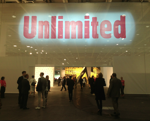 Inaugurated in 2000, the Art Unlimited platform is an open-plan exhibition dedicated to large-scale contemporary artworks, such as grand sculptures, experiential rooms, and installations of moving images, which, due to their size, cannot be showcased in the main exhibition hall. Organized by Gianni Jetzer, who replaced Simon Lamunière as curator of Art Unlimited in 2012, the show typically features a selected group of galleries (approximately half of the more than 300 included in the principal space) that each exhibit works by one artist. Unlike most curators, Jetzer does not select the works himself, but rather serves as liaison between the galleries and the fair organizers, and also adroitly positions the works in the large warehouse space off Messeplatz.