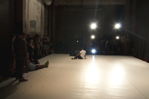 Fast-forward to last month’s Festival TBD: Emergency Glitter at Abrons Arts Center, where L.U.R.E came to mind during Carlos Maria Romero, Juan Betancurth, David González Jiménez. 27.07.2013. New York. Abrons Art Center. 19:00. Names of all spectators separated by commas, a collaborative performance by choreographer Carlos Maria Romero and visual artist Juan Betancurth. Part nightclub, theater, warehouse, and wood-shop, the performance turned Abron’s Playhouse space into a discursive site where bodies, objects, words, and smoke performed with equal resonance.