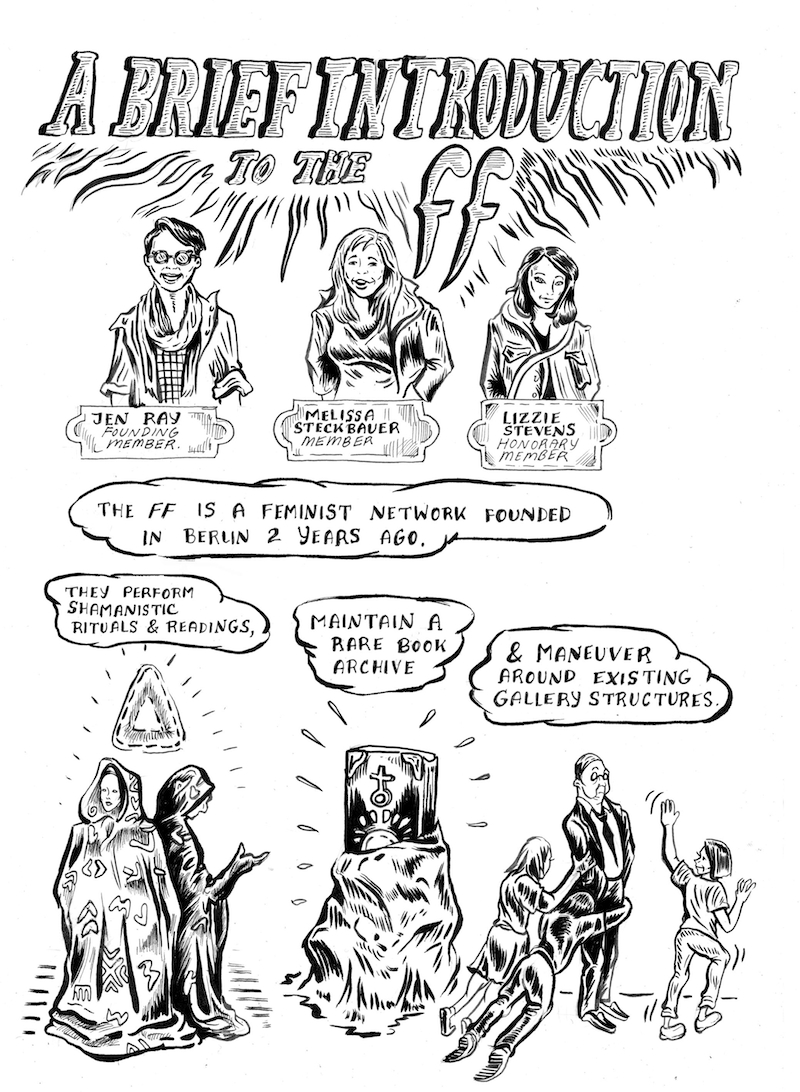 For Art21 Magazine’s “Failure” issue, I created a visual profile of the ff, a feminist network operating mostly out of Berlin. It’s a growing group, one with multifaceted interests and a shared ambition to create a strong (but not exclusively female) presence. I thought the group’s relationship to failure was interesting for two reasons, one being that corralling so many opinions within a collective identity is challenging. The other reason is the specter of otherness implicit in any counter-movement. One member, Melissa Steckbauer, noted that a lot of alternative art approaches are built on ideas of failure, in an antagonistic position to the gallery system. But the ff seeks to work alongside these systems, inventing new ways for the artists to perform and be seen together.