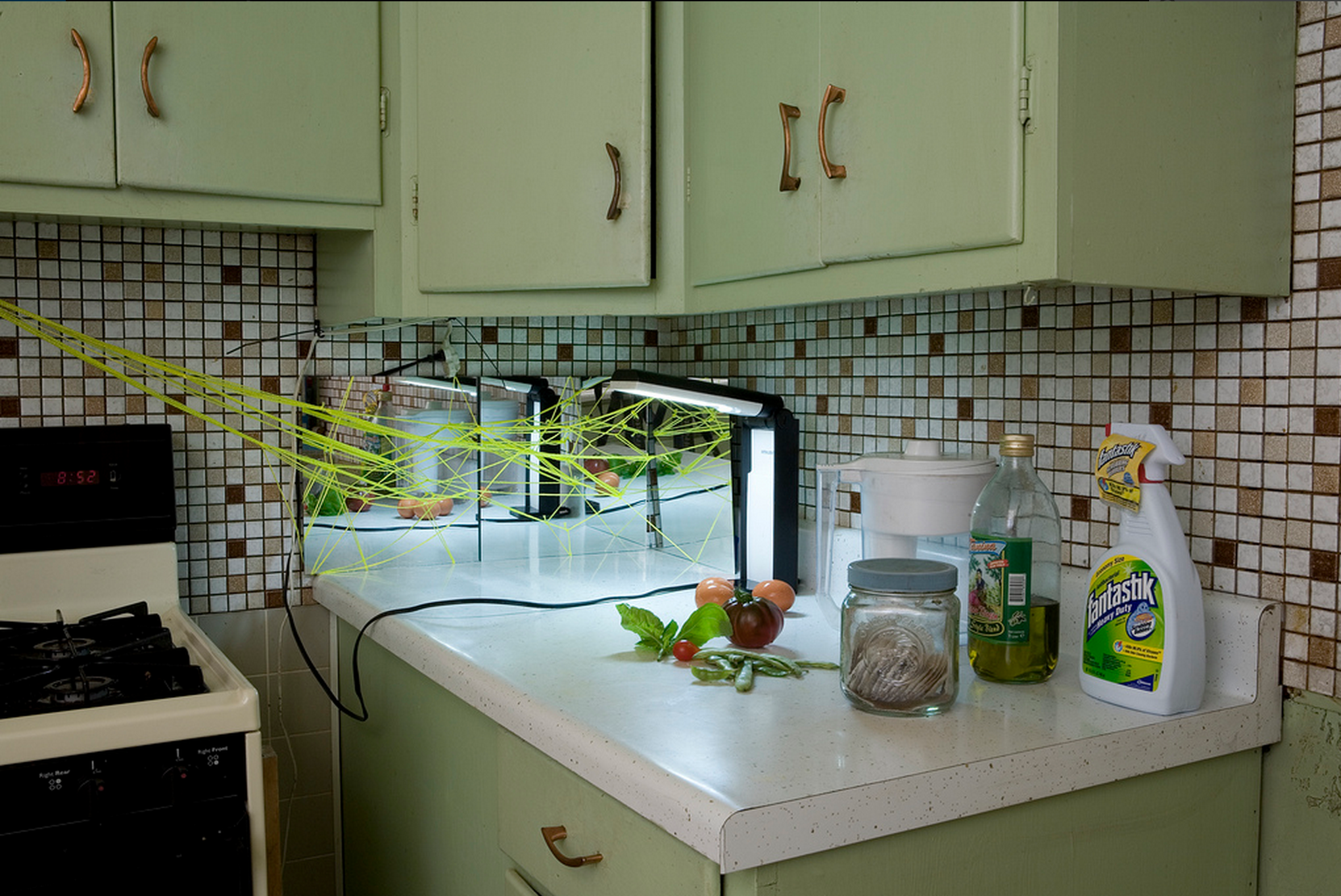 SS: I am fascinated with the patterns of networks. This is both an abstract and an everyday interest. Recently I was working in my neighborhood café, and a friend pointed out that, by introducing three people to each other (with various mutual affiliations), I was creating a real-life version of one of my installations. Often my artworks visualize networks—sometimes personal, often about the structures of large virtual systems. My works are extremely “meta” and at the same time create direct, immersive, spatial experiences that are highly accessible. My video installation Network (2009) was created for a storefront in downtown Chicago, where the public observed the process; many people came in to talk to me as I was building it. A later version of Network took over a house for a month, where two artist-curators lived in and around it. It explored a question: What tensions arise between an elaborately crafted and lofty ideal (of, for example, technology, virtual space, or utopian social structures) and the realities of daily life?