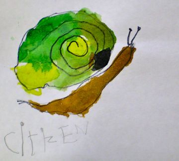 AF: I use drawing or scientific illustration in various ways with my students. For example, if they are studying biology using snails, or mealworms, or plants, or pillbugs, I have them do large detailed studies. I teach this technique starting in Kindergarten right through fifth grade- explicit life drawing techniques that I call “Looking and Drawing.” I model first using pencil and an art eraser. I implore them to look a LOT and draw a LITTLE; look a LOT and draw a little more; to erase as needed; and redraw. I emphasize the looking: “Is this plant the exact green that’s in the paint set?” “Is the entire plant the same green?” Then I show them some basic mixing and blending techniques. Students often draw and then label the parts. They get to draw microscopes, flowers, fruit, etc.