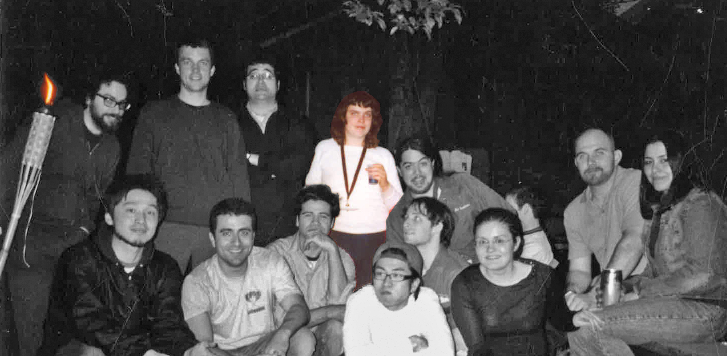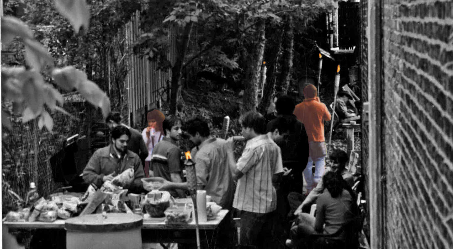 Flo made a LOT of friends at school. He and (her) partner at the time, Brian Stansbury, shared with all of us – meaning us SAIC students — the greatest parties and BBQs at their home. They would go all out! At one of those gatherings in Spring 2003, I took 6 disposable cameras with me, which I passed around. Everybody took photographs and out of over 200 shots today, I can hardly find one fitting for this post to share with you besides these two.