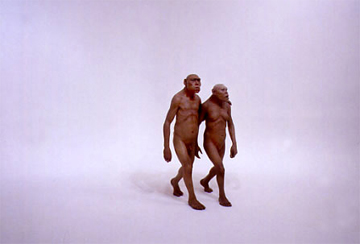 It would reflect unspeakable hubris on our part if we were to say that fire was the Internet of the ice age. If we were playing pancakes or waffles, I would take fire in a hot second. And yet, here you are, your face and hands pressed close to the glow of your monitor and keyboard. In the context of the contemporary artist’s negotiation with the caveman, however, it is not so much a question of the fire, but how close he or she gets to identifying with it and the cavemanness of the caveman, if you will. Take Tim Noble and Sue Webster’s The New Barbarians. It’s not that dissimilar to the ending of Encino Man, when Link’s unfrozen ice age girlfriend crashes the pool party, except here, the caveman and cavewoman are the artists themselves, perhaps striding into a Michael Asher opening. While they are framed by the white cyclorama of an Apple product photography shoot, their faces evince the quiet attitude of philosophers pondering the materiality of fire and not how to, let’s say, burn a frog. The equal partnership between caveman and cavewoman in Noble and Webster’s work is not, however, reflected in the quality of the made-for-TV sequel to Encino Man, Encino Woman.