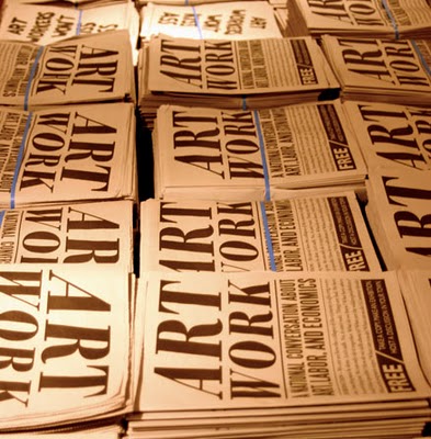While the ethos behind Gallery 400’s program is not quite “anything goes,” its exhibition history reads as a living primer on experimental exhibition practices that are deeply sympathetic to the needs of artists. Recently, Gallery 400 hosted a project by the Chicago group Temporary Services (Brett Bloom, Salem Collo-Julin, and Marc Fischer) who employ a range of critical strategies and formats in their work. Their exhibition at Gallery 400 focused on one of their latest projects: Art Work: A National Conversation on Art, Labor, and Economics, a newspaper and accompanying website containing writings and images from artists, activists, writers, critics, and others on the topic of working within depressed economies and how that impacts artistic process, compensation and artistic property.