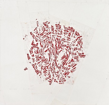 Roni Horn, "Else 9", 2010. Red pigments and varnish on paper, 92 1/2 x 96 1/8 in. Image: via Hauser & Wirth.com