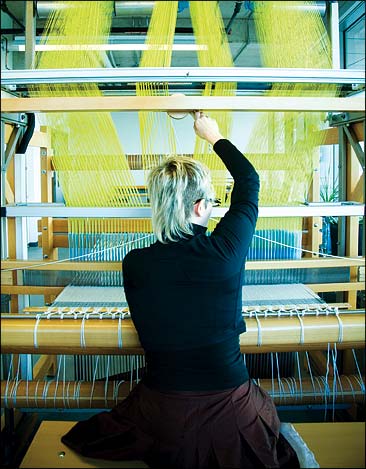 Isabelle Sentenne demonstrates the use of the electronic loom located in the EV Building's Jacquard Room. Photo courtesy of IITS Creative Media Services from Concordia University Journal