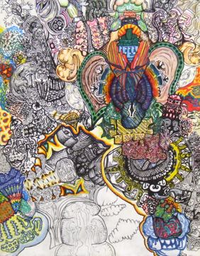 I am currently teaching a unit called Driven to Abstraction. In this unit, students are asked to give form to ideas or things that do not have any specific form, such as the sound of music, the smell of a flower, or the sting of cold water in your face. Being able to visually simplify and represent an idea or event, for example, is an approach many contemporary artists work with in their practice. In a recent lesson I asked my classes to warm up to abstraction by trying to picture the music of the Buena Vista Social Club without actually picturing instruments, people, or a specific place. I simply asked them to convey what they were listening to by representing these sounds in color, shape, line and juxtaposing elements of the design. As many, many of us have already learned, abstraction is hard for kids. Thinking past the representation of a horn and actually picturing, literally, the sound of a horn is no easy task. Arthur Dove’s “Foghorns” helped. So did a look into Kandinsky’s painting and watching Arturo Herrera’s video about music.