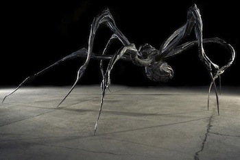 Louise Bourgeois, "Crouching Spider", 2003. Steel, 106 1/2 x 329 x 24 inches. Courtesy Cheim & Read, Hauser & Wirth, and Galerie Karsten Greve. Photo: Christopher Burke. via Art Daily.