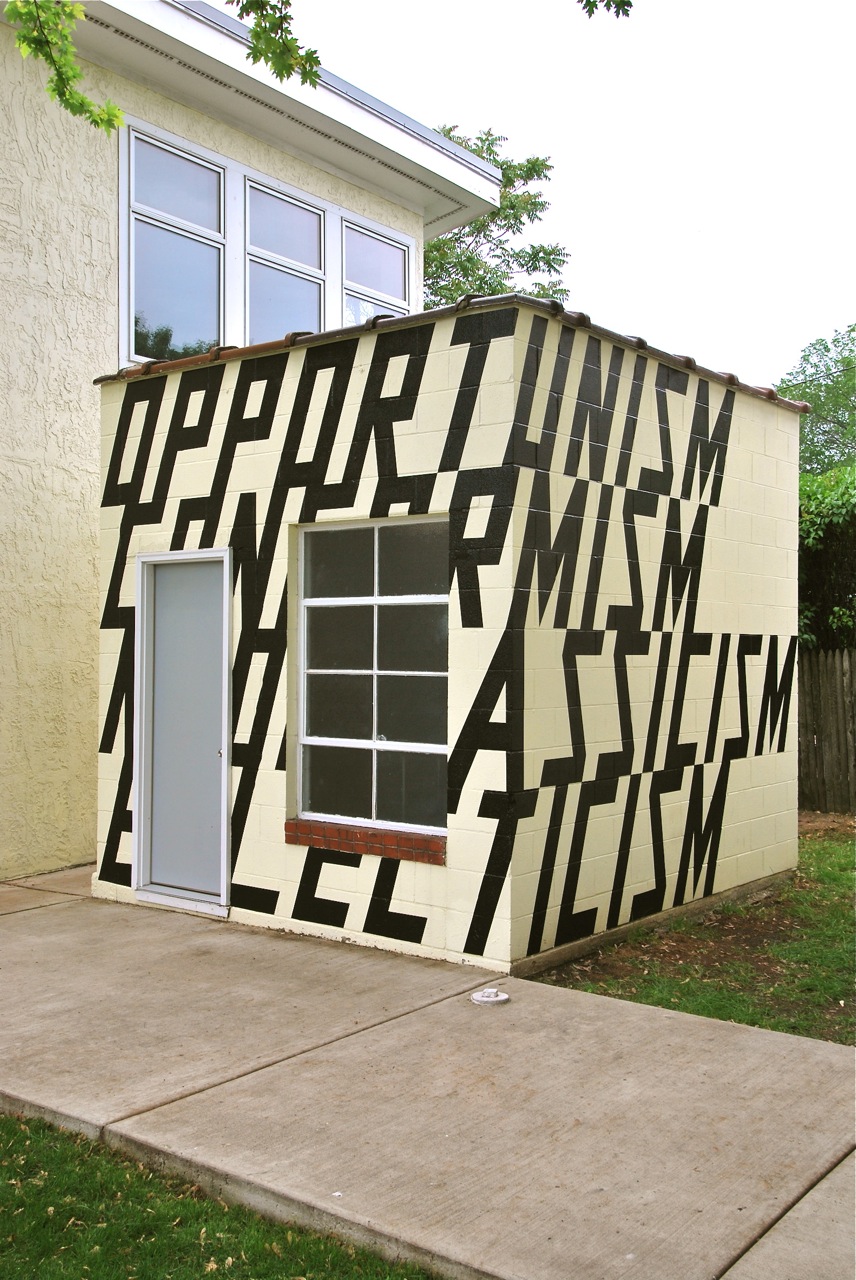 MG: When we moved to Oak Park in 1997, the property we purchased had this odd little out-building attached to the garage. We initially used it as a garden shed, a place to park the lawn mower. Yet despite its diminutive size, we thought that it would be better served if we employed the building as an artist’s project space. It is important to say that this kind of thinking — bringing the contemporary art world to us — was not a new adventure. Before moving to Oak Park, we were living in Milwaukee, where we organized several exhibitions and enlisted artists and writers from around the globe to participate in our exploits. Why not invite Tracey Emins, Jan Tumlir, and Elmgreen + Dragset to participate in our projects? Their interest and participation encouraged us to work with artists we thought were compelling instead of convenient.