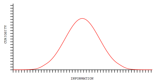 "Figure 1. Curiosity as a function of information," graph from "Naive Set Theory," by Anthony Humberman, 2007.