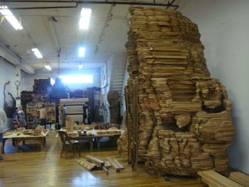 On Monday everyone gathered back at NYU for a presentation and special discussion with our Associate Curator, Wesley Miller, who outlined his layered approach to making films for Art21 in order to tell compelling stories about contemporary artists. Afterward each participant met with one of us to discuss planning and ideas for a unit of study that would incorporate contemporary art, essential questions, and some of the strategies learned in future lessons. To round out the day, my colleagues Jessica Hamlin and Marc Mayer presented a workshop introducing the Ning site that participants would use to document progress and share ideas after the institute, as well as the Safari Live technology we use in order to have real-time conversations with participants in the program. If that wasn’t enough, we also boarded a train to Brooklyn that afternoon to visit Ursula von Rydingsvard in her studio for two hours. When we arrived, Ursula was deeply involved in working on a small piece, and after a LONG uncomfortable 60 seconds staring at her back, she turned around and launched into a superb talk about her work and process. The day was absolutely exhilarating!