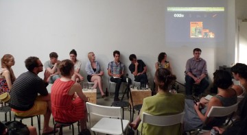 On July 22, “Print and Demand” — one of the events in the series — brought together editors and representatives of four publications for a podium discussion on the changing nature of print and online publishing. Participants included the Norway-based XYM ,whose content is solely downloadable in pdf form, Berlin-based bi-annual publication 032c, the Canadian art magazine/journal Fillip and Triple Canopy’ s several associated web-based publications. Given the diverse nature of the participants, formats, readership, and funding models (including “no” budget, public grants, and traditional ad-based financing), the discussion was lively and fortunately not heading towards a print vs. digital polemic (which would have been really boring). The panel members offered a unified response to a question from the audience about missing comment functions or ways that readers could respond to the content of the publications; interestingly, none of the participants encourage this type of anonymous feedback. Panel members agreed that their readership and contributors often overlap – instead of writing comments or letters to the editor, readers with ideas should think about contributing. They also pointed out that they all thought of their respective projects as curating spaces which can affect “community building”– no matter whether these communities coagulate through websites, downloadable pdfs or within a magazine format purchased in art bookstores or newsstands.