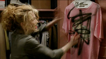 Catwoman’s costume is crucial to understanding her character’s psyche. In the film (it is currently on Netflix Instant Watch if you haven’t seen it), a lonely secretary named Selina Kyle (Michelle Pfeiffer), is thrown from a window by a her boss Max Shreck (Christopher Walken). The fall should have killed her, but in a Lazarus-like maneuver she is revived by mystical felines. She runs to her lonely one-bedroom apartment, not to call the police, but to redecorate. As she shreds her stuffed animals in the trash compactor, defaces a kitty sweatshirt with black spray paint, and smashes her Hummel figurine collection, she destroys the emblems of femininity that clutter her life.