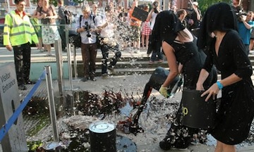 Anti-BP sponsorship protest outside Tate Britain, London, July 2010. Image via the Guardian website. Photo by Dominic Lipinski/AP.