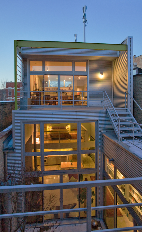 Whitehead’s home — a stunning, light-filled, 3,000 square foot home and studio dubbed The Green House — is one of the most ambitious mutli-disciplinary projects that Whitehead has tackled thus far. The house has garnered a lot of positive buzz in the architecture and design community (the New York Times wrote about it in 2008) due to its encyclopedic deployment of two decades’ worth of ethical mandates on sustainable design. Reclaimed from a brick warehouse on a plot of land that was once contaminated by an underground gas tank, the house is a model of sustainable technology, adaptive re-use, and affordable green design (it was begun in 2004 and completed in 2007 by the architecture firm James & Kutyla). It uses a geothermal heating and cooling system and two rotating wind turbines along with photovoltaic and thermal panels located on the roof — all of which provide the house with roughly 50% of its energy. Whitehead’s husband, the artist and clinical social worker James Elniski, keeps bees on the upper roof deck, and there are several other rooftop gardens that slow down storm water drainage and provide heat reduction (you can read further details on all of the home’s green features and technologies here and here). Whitehead played a lead role in the home’s design, pushing to incorporate as many sustainable technologies as possible and sourcing most of the materials locally. “We are modeling how people will live in the future,” she explains, adding that she and Elniski wanted to “get out of the ‘hippie model’ of what an alternative house could be.”