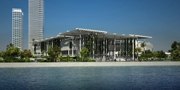 The most exciting architectural project underway is the upcoming Miami Art Museum (MAM), designed by the Swiss firm Herzog & de Meuron, which is slated to open in 2013. The building will be situated within a 29-acre park and will overlook Biscayne Bay. The architects are aiming to integrate the surrounding green space into the design through shaded veranda and plazas, columns of vegetation, landscaping and terraces, and an overhanging canopy perforated to allow in natural light. Green technology such as geothermal cooling will help to regulate temperature and humidity levels, and wind, rain, and solar power will aid in providing energy with minimal environmental impact. The new MAM is being conceived like a living, breathing organism, intended to “expand organically from within without major interruptions,” as “fluid interior volumes” allow for easy gallery expansions and re-design without dampening visitor traffic. Certainly it’s a project to follow.