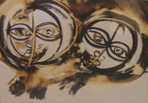 Jjuuko Hood is another artist whose work I discovered while in Tanzania. Hood is a recent graduate of the well-respected art program at Kampala University in Uganda. His captivating canvases blend dynamic, textured surfaces, innovative materials (at present he is using acrylics on bark cloth, which is produced from Ugandan fig trees), with themes steeped in local cultural references. Hood’s work demonstrates an appreciation of certain modern European art movements — cubism foremost among them — yet to my mind, he successfully avoids becoming derivative. Would it be odd to say that, unlike those Maasai warrior canvases, the work by Jjuuko Hood and George Lilanga fulfilled my own fantasy conception of what contemporary African art should be?