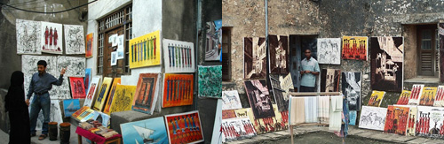 Jjuuko Hood is another artist whose work I discovered while in Tanzania. Hood is a recent graduate of the well-respected art program at Kampala University in Uganda. His captivating canvases blend dynamic, textured surfaces, innovative materials (at present he is using acrylics on bark cloth, which is produced from Ugandan fig trees), with themes steeped in local cultural references. Hood’s work demonstrates an appreciation of certain modern European art movements — cubism foremost among them — yet to my mind, he successfully avoids becoming derivative. Would it be odd to say that, unlike those Maasai warrior canvases, the work by Jjuuko Hood and George Lilanga fulfilled my own fantasy conception of what contemporary African art should be?