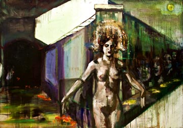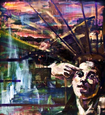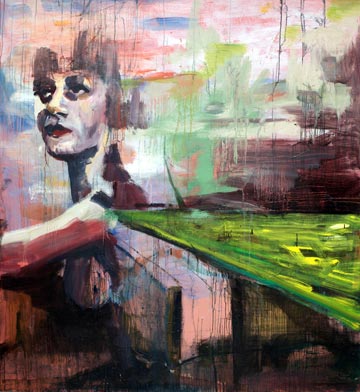 Jenny Schade thinks she was born in the wrong century. The 25-year-old Montreal-born artist has devoted herself fully to painting — pure oil-on-canvas painting. Her large works depict abstract landscapes always populated by a face or a figure. Her paintings are charged with a Beckmann-like intensity. A promising young artist, she has been featured in the 2009 juried exhibition, Fresh Paint and New Construction, at gallery Art Mûr and lauded as “one to watch” in the Montreal Mirror’s NoiseMakers of 2010. While Schade’s material and tactile canvases always reveal her process, much is still left to mystery.