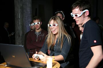 2008’s GAMMA 3D, far before Avatar and today’s 3D craze, aimed to explore whether a game could be designed using red-blue stereoscopy and rely completely on depth perception to experience a game. Kokoromi produced a game, using head tracking, called Super HYPERCUBE, a sort of 3D Tetris where the goal is to fit a complex shape through the hole on a free-floating wall (sort of like the human Tetris on Japanese game shows). The experience brought the video game world further into reality, engaging with spatiality and positioning.
