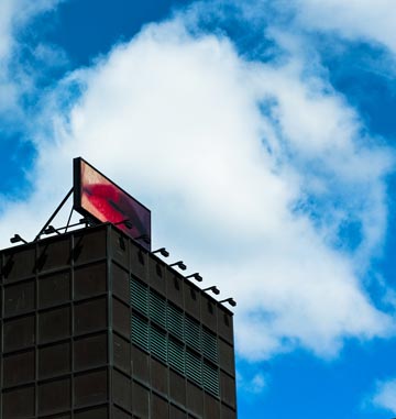 Geneviève Cadieux, "La voie lactée," billboard-sized image, 1991. Image perched on the roof of the Musée d'art contemporain de Montréal. Photo courtesy of Michel Beaulne.