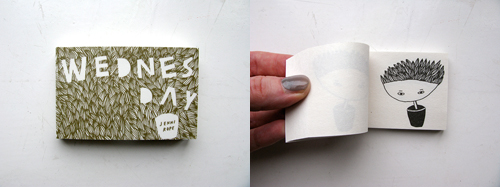 I own one of Jenni’s business-card sized flip books — Wednesday, from 2003. It lives in my coffee table, where guests regularly take it out for a spin. The story couldn’t be simpler: a plant emerges out of a clay pot, grows a face, then the face retreats, and the plant dives back into the pot. I bought it a year before I met Jenni, on my first visit to Helsinki. At the time, I didn’t know about the other contributions she has made to the Helsinki art scene, or to the world of illustration in general. Since then, I have appreciated it for its simple charm. Jenni told me that flipbooks combine her love for books and hand-drawn animations perfectly. And she likes the idea of an art object you can hold in your hands. Napa recently had a flipbook exhibition where people could flick through original painted flipbooks (“They were meant to be touched!” she exclaims).
