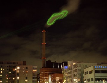 Some of my favorite projects in recent Pixelache history include Unsworn Industries’ Megaphonebooth, a giant, coin-operated megaphone in Kiasma’s courtyard. For €1/minute, you can speak into the handset and your voice is amplified megaphone-style. The project is a critique of how we already engage technology in public space through cell phones, iPods, and the like, and how technology in turn messages us through advertising and telemarketing. Both scenarios take place often to the detriment of our fellow public space users. Megaphonebooth, explain its Swedish designers, “is a deliberately tragic solution meant to bring focus to an unbalance while feebly attempting to correct it.” Entirely different but equally memorable as a Pixelache project was the widely successful Nuage Vert (2008), now inspiration for this year’s energy consumption-themed public art contest. An artwork by HeHe (Helen Evans & Heiko Hansen), Nuage Vert harnessed the vapor emissions of a Helsinki power plant to illustrate the current levels of electricity consumption by local residents in the sky itself. The project received the coveted Golden Nica award at Ars Electronica and was named Finnish Environmental Artwork of the Year in 2008.