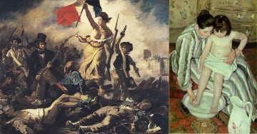 From L: Eugene Delacroix, "Liberty Leading the People," 1830; On R: Mary Cassatt, "The Child's Bath," 1893.