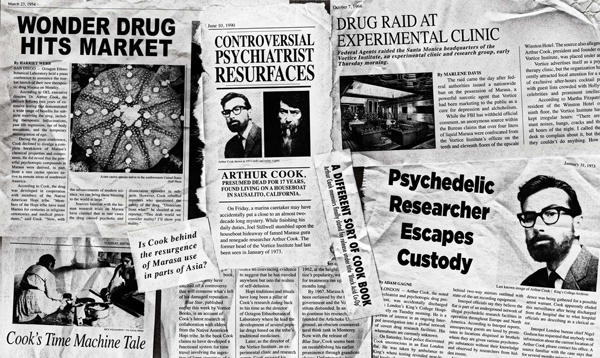 JF: There was quite a bit going on with LSD before the counterculture really caught up. It was this drug developed by a scientist and then used by the government, either as a truth serum or weapon–a Manchurian candidate type of thing–or even a healing tool. That was more interesting to us than the psychedelic culture that we all know. In this case, this building seems really appropriate–for one thing, it’s in California, which is where a lot of this experimentation was happening in the 50s and early 60s.