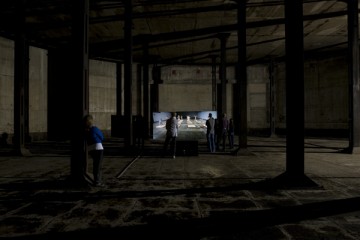 Jesse Aron Green, "Ärztliche Zimmergymnastik," 2008. High-definition video-installation (color, stereo sound). 80 minute loop. Dimensions variable (minimum projection size 18ʼ x 7.69ʼ, aspect ratio 2.34:1). Video still. Courtesy the artist.
