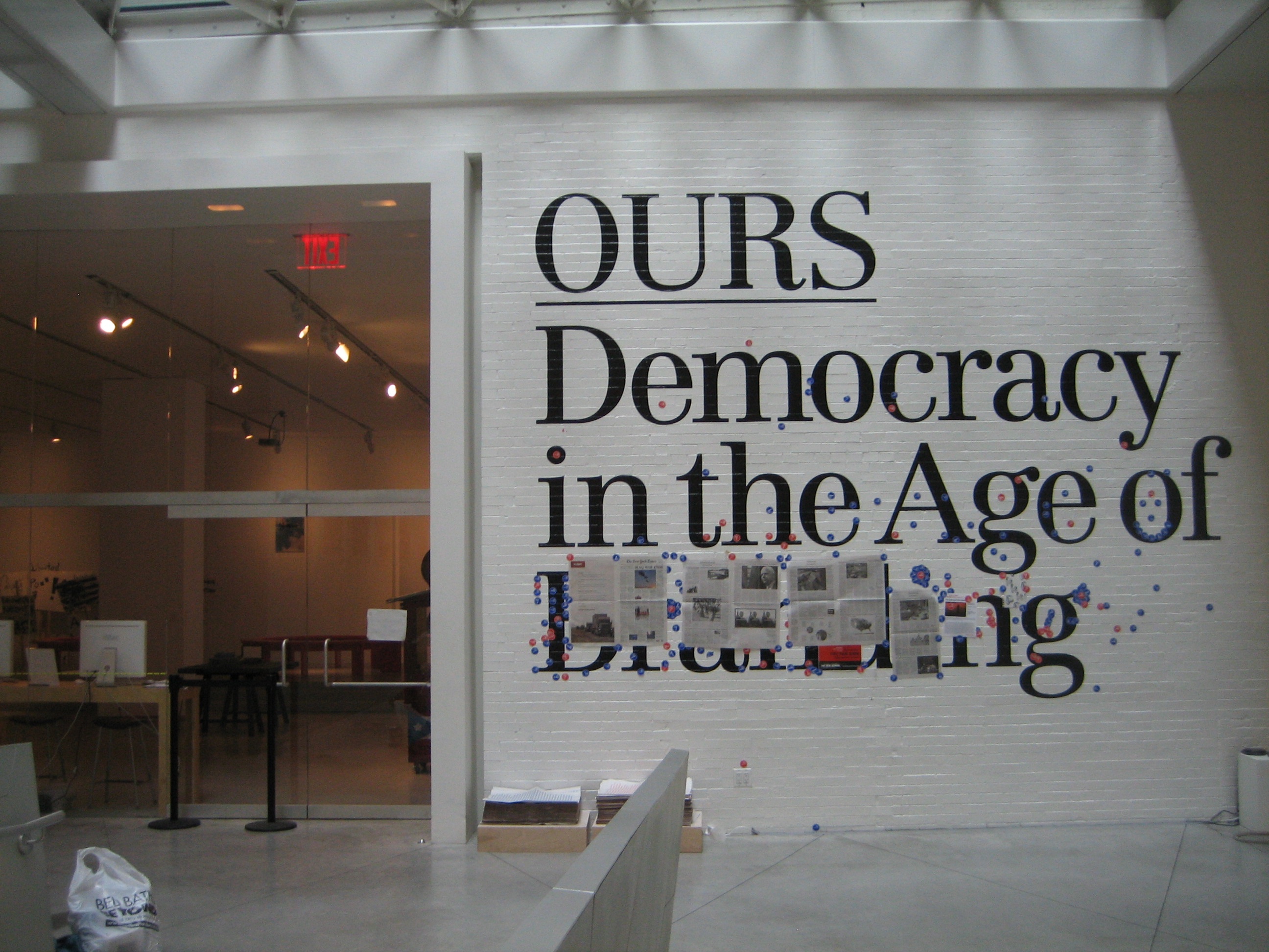 “OURS: Democracy in the Age of Branding” at Parsons The New School for Design, 2008-2009. Entry wall to Kellen Gallery.
