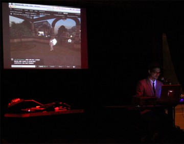 According to Rafman, it is the live navigation of Second Life that constitutes “the performance,” which goes down something more like an experiential, group lecture that favors extroverted participants. It is Rafman who navigates Kool-Aid Man; however, he asks attendees for their input on what to do, where to go, and what to say to other avatars while perusing the program. Like a physical tour with an informed tour guide, Rafman invites the audience to ask questions throughout the tour. During the performance, we stumbled upon virtual parties, orgies, dystopian wastelands, and the most bizarre social encounters occurring between other avatars. Rafman warned us, “if you can imagine it, it exists in Second Life.” At one point, another avatar even discovered that Rafman was giving a virtual tour of Second Life to our group and allowed us to interview him. He also told us about some cool places to check out in Second Life and teleported with us to a few of them. Chance and improvisation are the opportune words in this performance.  Neither Rafman nor the audience knows what will happen when the artist logs in Kool-Aid Man. What ensues for sixty or so minutes raises myriad questions that deal with how we live and where agency lies in virtual reality — can the web, and a virtual game specifically, have agency?