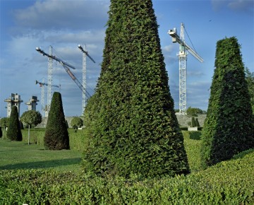 Kenneth O’Halloran‘s terrific Tales from the Promised Land depicts the cruel disintegration of the Irish housing boom. To use his own words: “‘Zombie’ hotels, ‘ghost’ estates, and mothballed apartment blocks mock the hubris of another era.” His photographs of abandoned constructions are both witty, heartfelt, and juxtaposed with fragments of promotional imagery that crystallize the corporate, suburban dream that drove the boom. The landscape of investment. Indeed, they take on an almost archaeological, as if this is the iconography with which future generations will have to piece together our civilization, come the floods.
