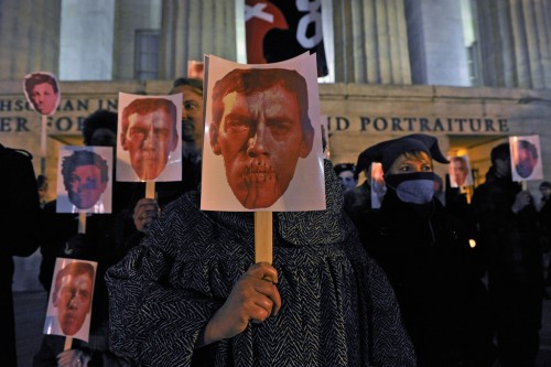 Protest on the steps of the National Portrait Gallery, December 2010. Courtesy the Washington Post, photo: Bill O'Leary.