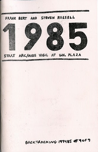 The events dealt with through the booklets in the box-set form a natural unity, as they foreground changes in the civic terrain around the Bay Area from 1985 until 1994. The first of these events is the ARC/AIDS Vigil at UN plaza, one of the first effective demonstrations of and for people with AIDS and AIDS-related illnesses in the United States, which lasted for over a decade.