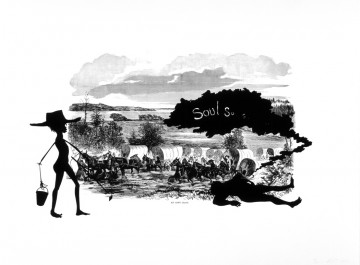 Kara Walker, "An Army Train," from “Harper's Pictorial History of the Civil War (Annotated),” 2005. Offset lithograph and screenprint. Image: 24 x 35 in.; sheet: 39 x 53 in. Edition of 35, printed by The LeRoy Neiman Center for Print Studies, Columbia University. Published by Sikkema Jenkins & Co., New York. Courtesy the artist and Sikkema Jenkins & Co., New York. © Kara Walker.