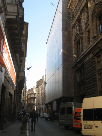 Street view down Voyvoda Caddesi of former Ottoman Bank Museum and Archives (on right, under construction)