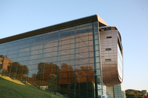 If you’re unfamiliar with EMPAC, you should know that it is a phenomenally striking building. My first thought was that I had happened upon a modern-day ark housed in a sleek glass hangar. Through its window ceiling and walls, what you really see when looking at EMPAC is its state-of-the-art acoustically perfect concert hall, which is encased in a Western Red Cedar-paneled reverse-Herringbone patterned hull, a gorgeous smoothly curving vessel. To even step inside is to allow the potential for transport.