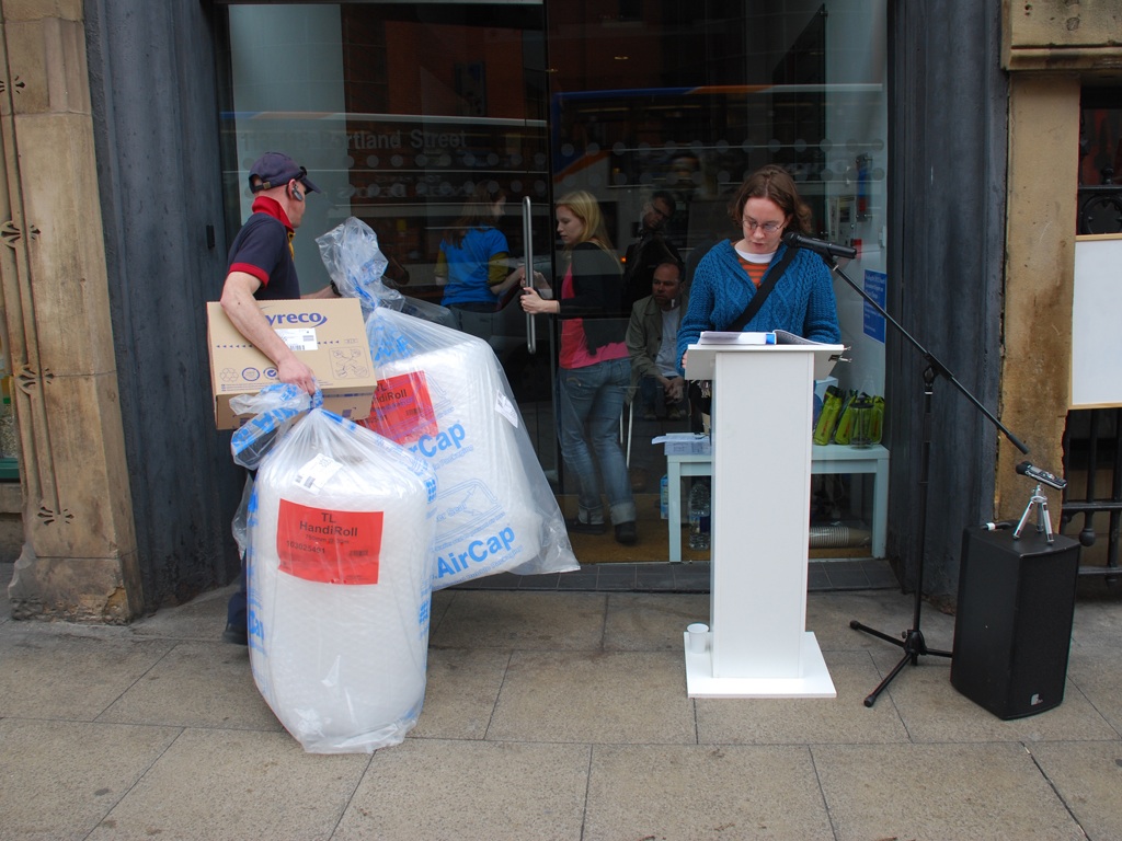 In two of Balkin’s most sustained and extensive works to date, This is the Public Domain (2003) and Public Smog (2006), what makes up the work is a paper trail of documents, actual, and virtual actions/performances, and research items that provide evidence for a practical exploration of legal and economic aporias; aporias which, when encountered through Balkin’s works, make visible the workings of a property system in the US (This is the Public Domain) and the current “carbon emissions trading” schemes made possible and lucrative by the Kyoto Treaty (Public Smog).
