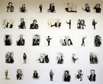 CI: When you perform as political figures you often draw attention to the emotive gestures, phrasings, and physical stances so familiar to all of us as political theater. Your sketches of political candidates do this, too. Since so much of your work is performed for groups of people, to what extent do you think of them in terms of ritual?