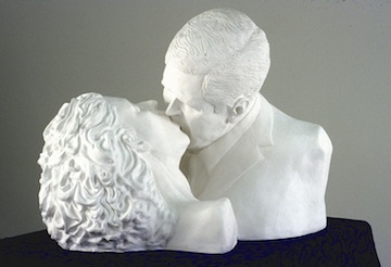 RM: Yes, I like how you phrased it, that characters are themselves a medium and I don’t feel tied to the material, but more tied to the expression of the character. Even when I am myself in the work, I feel that I’m performing myself as a fictional representation. Like the sculpture Kissing President Bush; although it’s a self portrait–it is an imaginary self. That’s the freedom that I feel in making these representations, be they sculpture or performance. But for me, the two are one and the same. I often feel that making a song, is just like making a sculpture, and its just the same to perform. They feel identical to me.